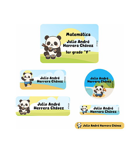 Vienen en diferentes formas y diseños. Cada etiqueta es personalizada con el nombre de tu niño, el grado y el curso.